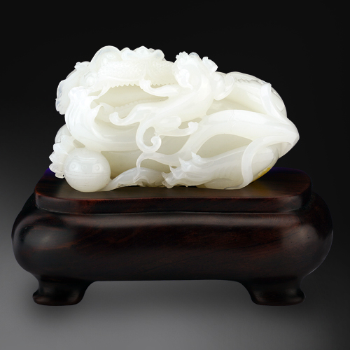 玉質晶瑩細膩,柔媚亮澤??钚托銡獾溲牛{子身形圓胖,闊嘴寬鼻,懷抱繡球,姿態婉轉可愛,雕琢利落,形象生動。獅子,表示勇敢,兩個獅子寓意事事如意,一大一小獅子寓意太師少師,意即位高權重。